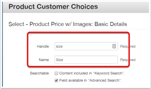 Enter a one-word handle (internal use) and a name (public use) for this option.