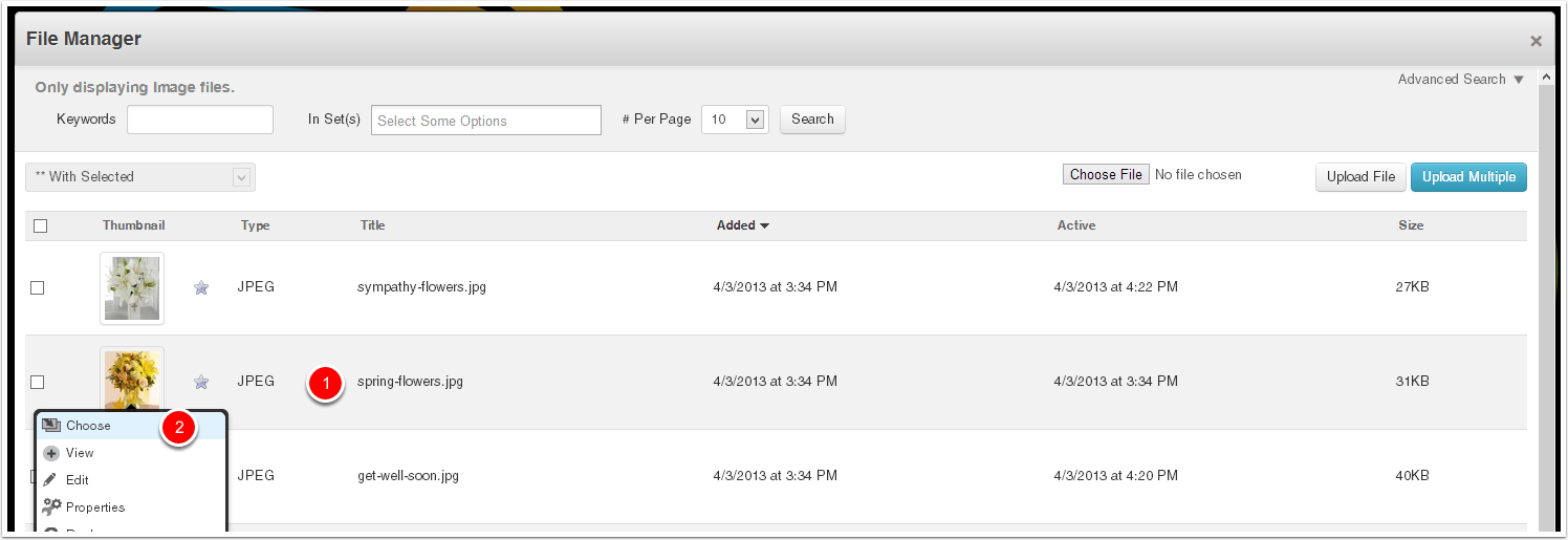 Select the appropriate image from the File Manager