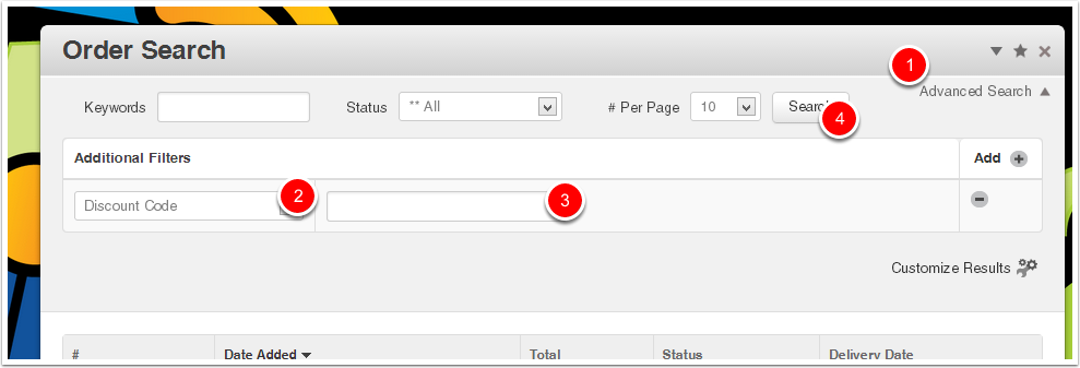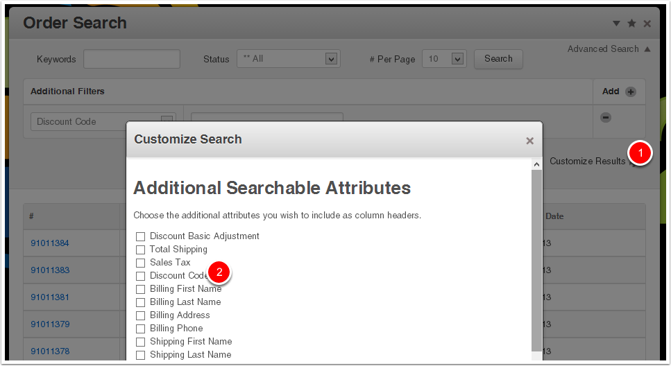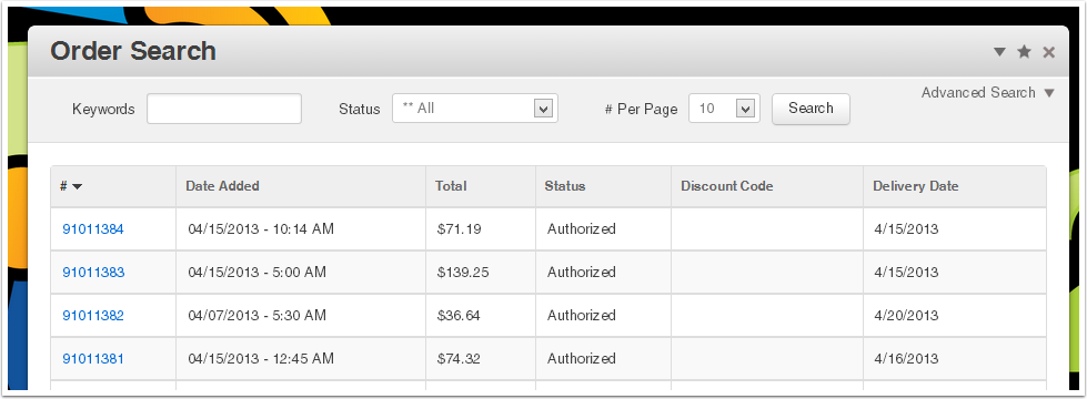 Click on the Discount Code header to sort by the Discount Code used on the order. Click again to reverse the sort.
