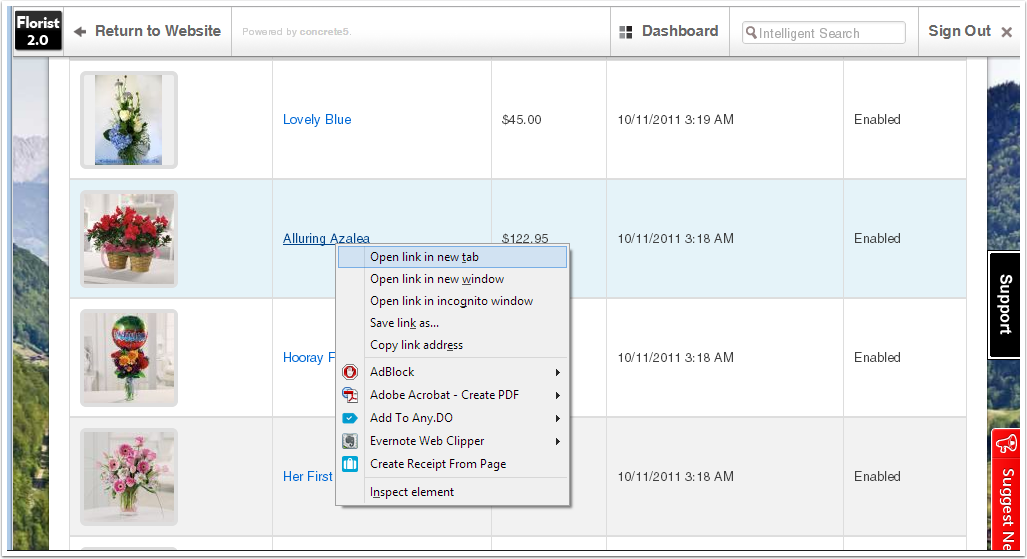 Right-click on the name of the Product to be edited and choose "Open link in new tab" to open the product editor in a separate tab while preserving the Product search results.