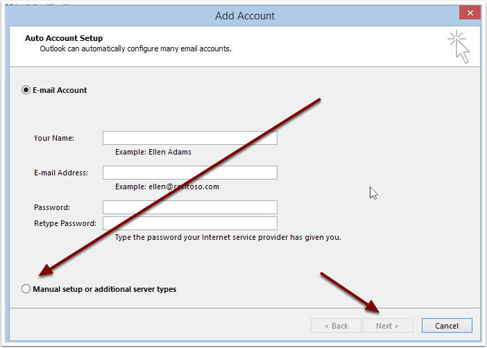 Choose "Manual Setup" then click Next