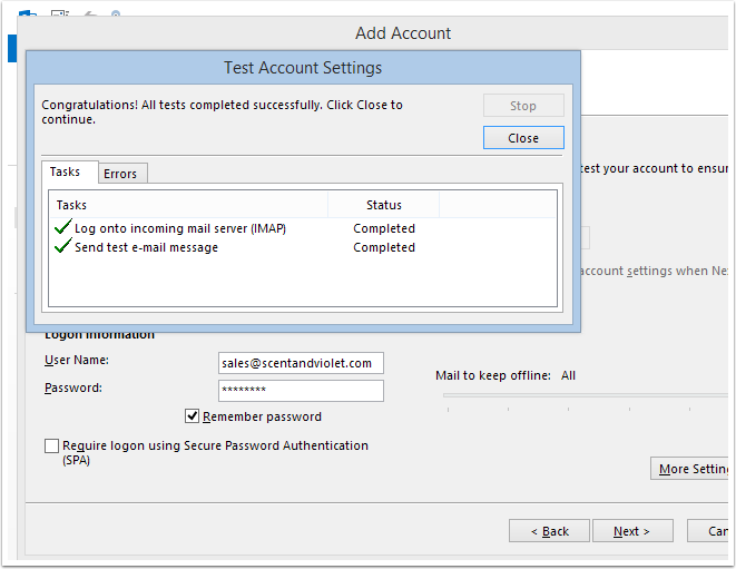 Fill in the fields as shown, using your email address and password. Click on "More Settings…"