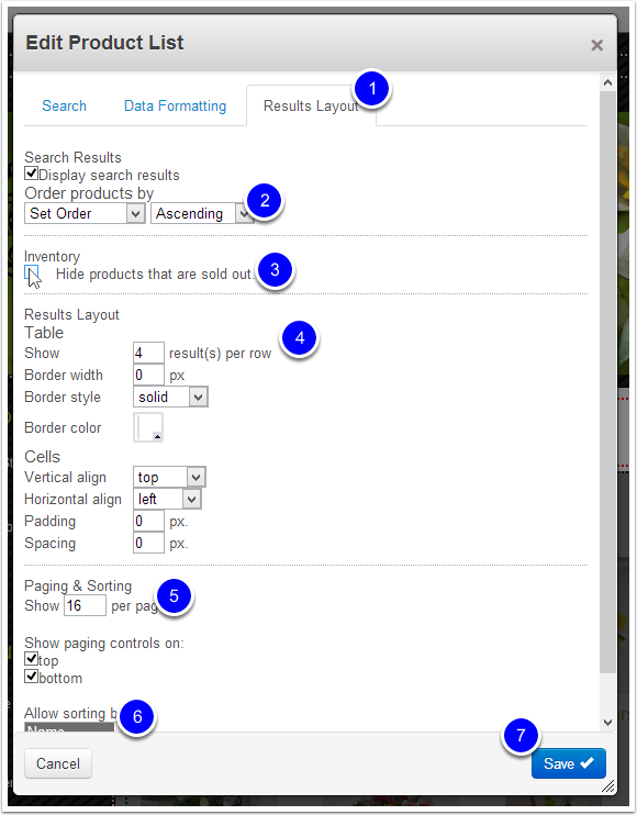 - Select one or more options to allow customers to sort by (ex: name, price). Hold CTRL to select multiple options.